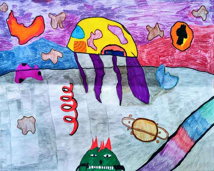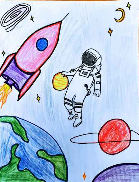 Učenici su pod mentorstvom profesora likovne kulture mag. Tonija Žufića izradili različite likovne radove, koristeći se tehnikama crtanja, slikanja, kolaža i digitalne obrade. Njihovi radovi prikazuju razne motive vezane uz svemir, kao što su planete, zvijezde, rakete, astronauti, sateliti i letjelice. Među njima se ističu portreti poznatih osoba koje su doprinijele razvoju svemirske znanosti i tehnologije, kao što su Neil Armstrong, Valentina Tereškova i Lajka.